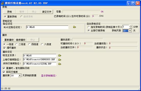 提供全自动行情录制功能,实现闭市期间的任何时段(包括周六,周日)动态行情教学,并可用回放的动态行情进行同步模拟交易